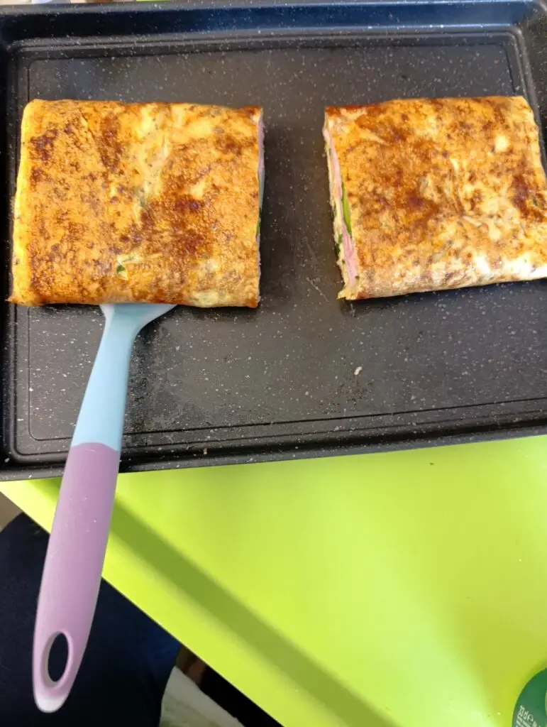 - añadir los huevos batidos con la sal y las especias a la plancha